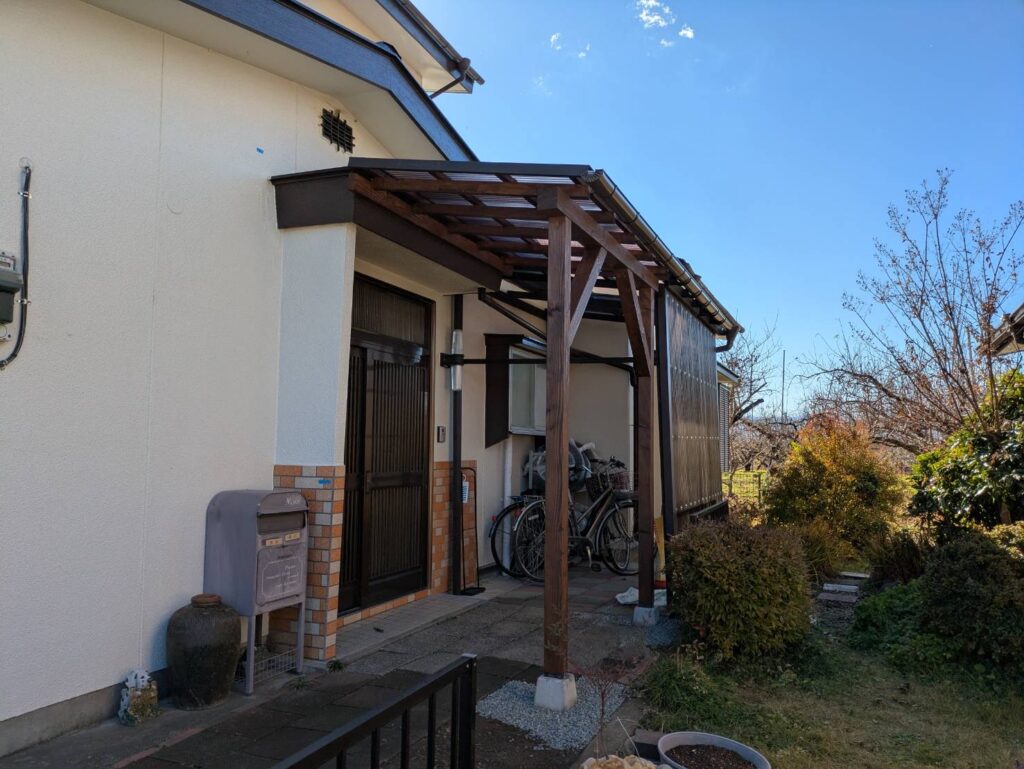 玄関前の屋根を拡張しました。これで雨の日も心配ありませんね!